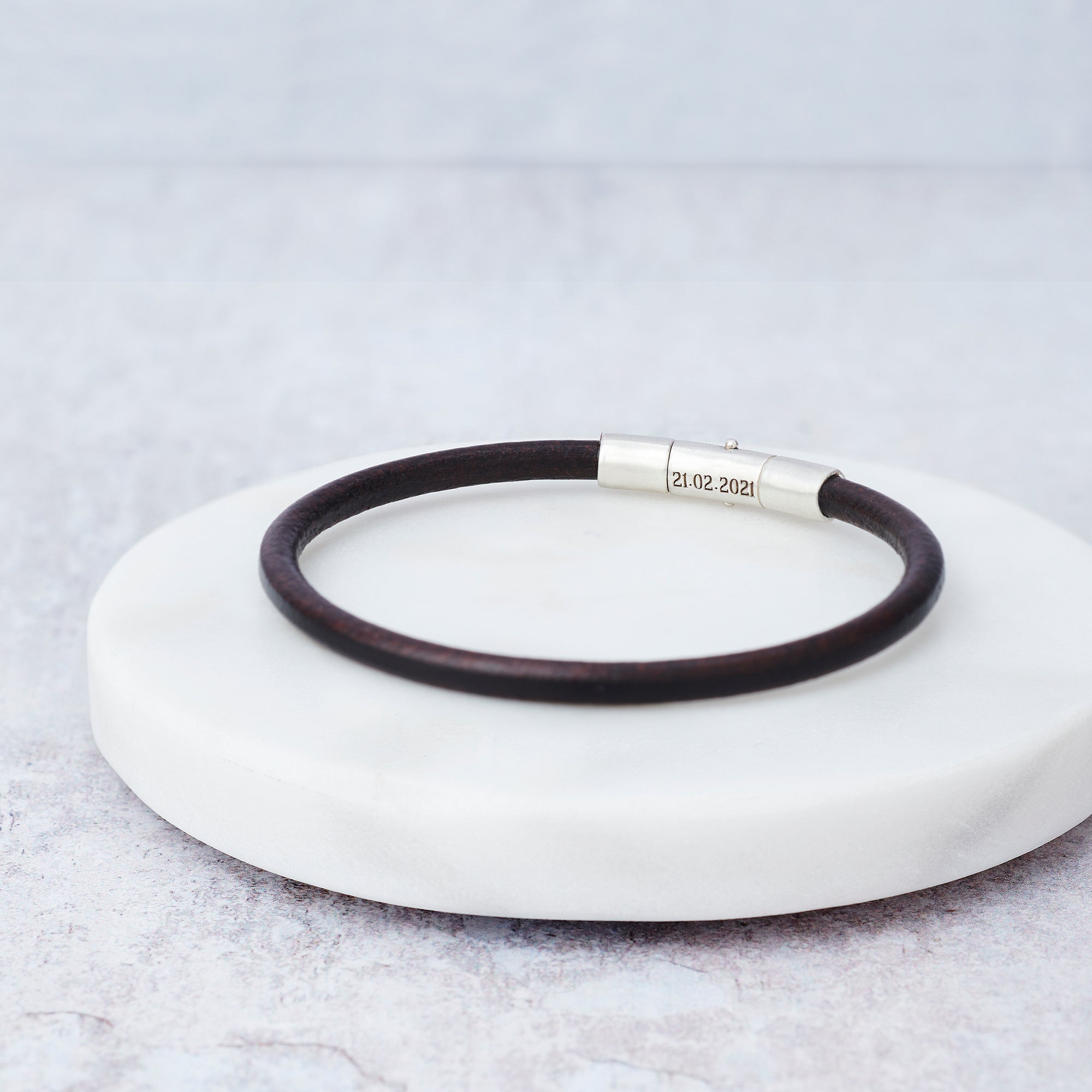 Personalised Silver And Leather Coordinate and Date Bracelet